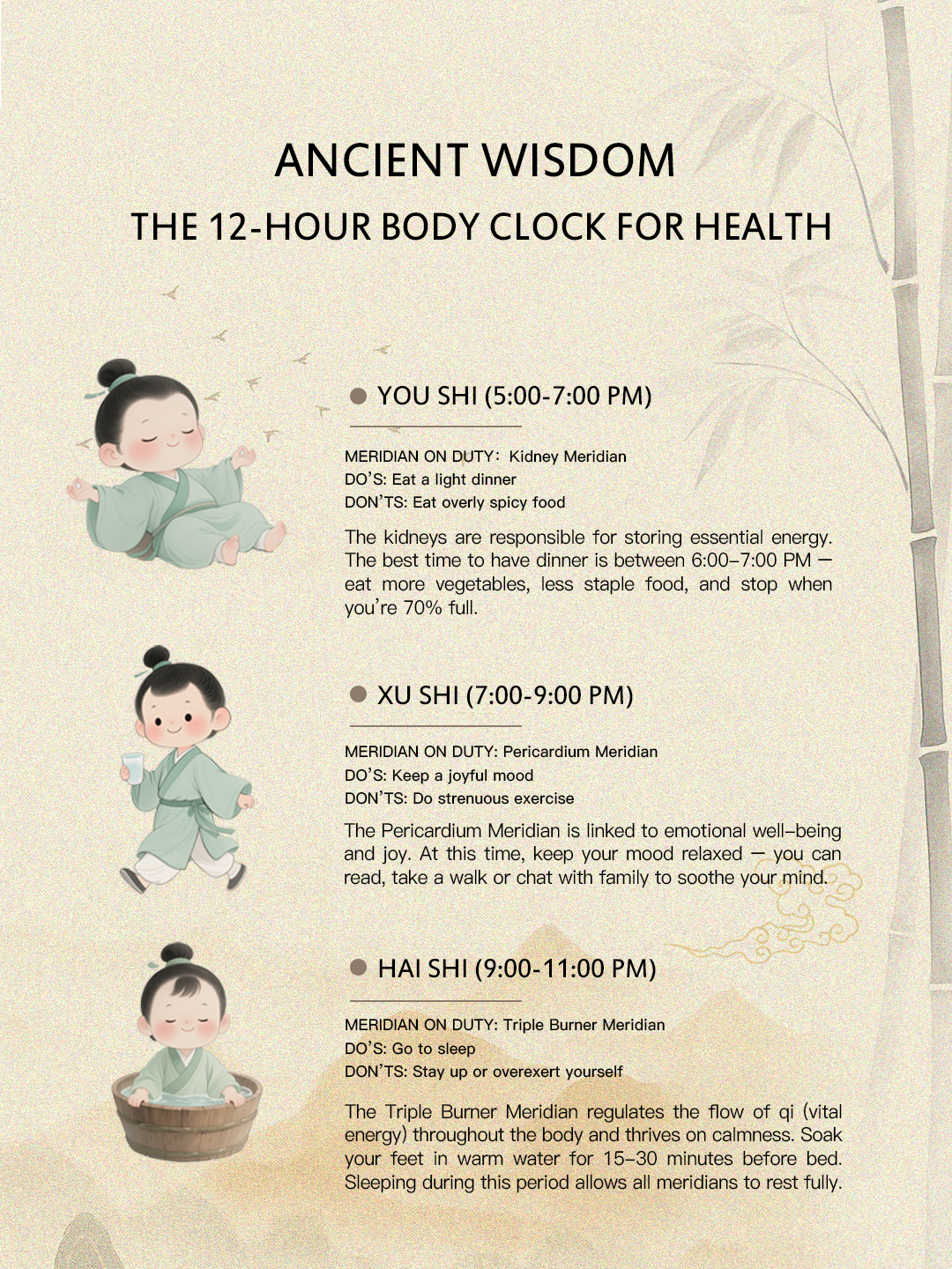 Each hour nurtures a vital organ.