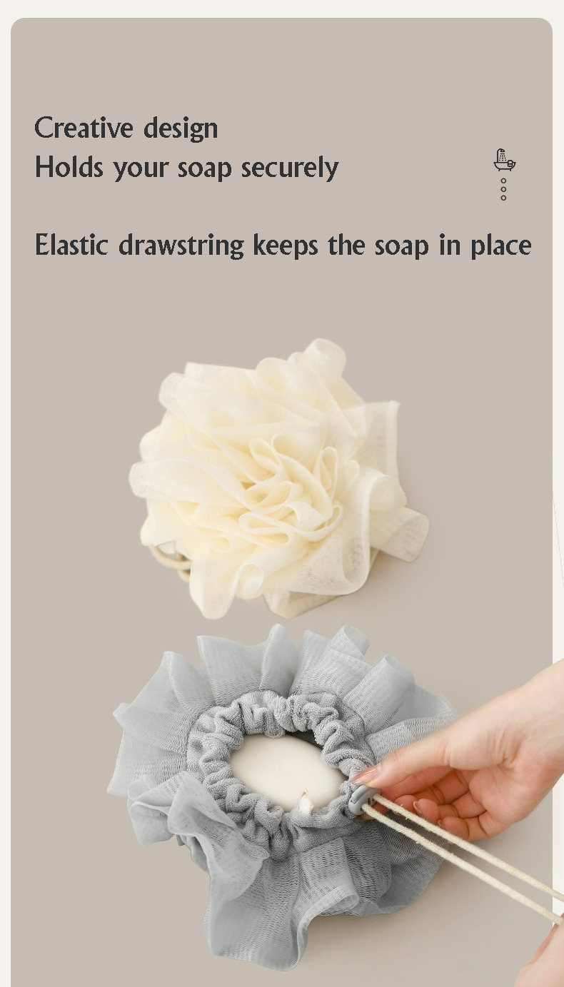 2-in-1 Body Scrubber, Shower Pouf with Soap Pocket, Mesh Shower Pouf Balls, Daily Shower, Travel Spa Use, Bath Accessory